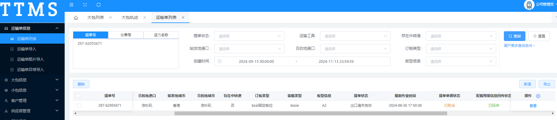 运输单列表