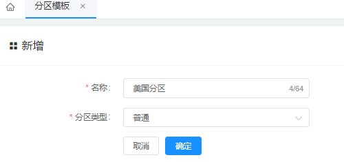 分区模板是统一管理分区的功能,分为普通分区和偏远分区; 创建分区时,选择分区类型为普通或偏远即可。 【基础数据】- 【分区模板】列表,点击【新增】按钮  填写分区模板名称,选择类型  点击【确认】按钮,创建分区模板,下一步点击【分区明细维护】  分区模板明细维护里,可手工新增分区,也可以选择导入模式,进行分区  手工创建分区 点击【新增】按钮,手工维护分区  点击【确定】按钮,一个分区创建完成,重复操作继续添加多个分区。 提示:国家,例如选择美国,输入US或美国后,选中即可。 分区模板导入 点击【导入】按钮,模板导入维护分区  点击【下载模板】,下载导入模板文件到本地,打开模板文件  按照模板填写分区信息后,保存模板文件见,点一下【点击上传】 提示:国家填写,例如美国,可以填写美国,也可以填写 US 文件导入后,提示信息如下 如果导入文件里有问题,导入日志信息会提示错误信息,根据错误信息修改导入文件即可。