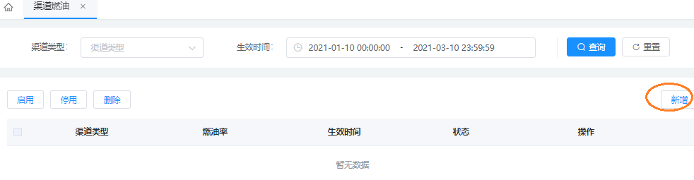 物流产品或渠道派送的费用,有些需要计算燃油费,这里是燃油率的维护。燃油率按找渠道类型进行维护管理。 渠道燃油列表,点击【新增】按钮  填写燃油率信息,这里按渠道类型来维护燃油,比如UPS,Fedex等  点击【确定】按钮,燃油率维护完成完成,一个渠道类型维护一个燃油率,该渠道类型下的渠道都会采用。