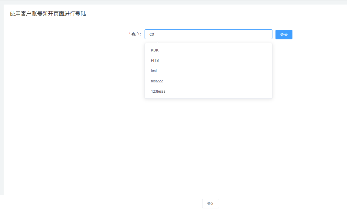 ## 客户端的快速登录入口 输入2个字符以上的客户代号或者名称,选择对应客户,点击【确定】后以客户身份进入客户端