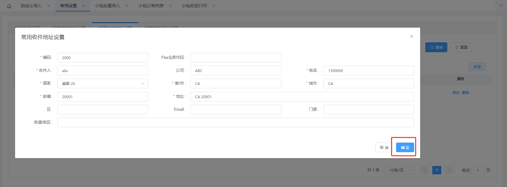 ## 常用设置:包含 物流产品设置、常用发货地址设置、常用收货地址设置、常用报关品名设置,四个部分组成 **1.物流产品设置**  **2.常用发货地址设置**   **3.常用收货地址设置**   **4.常用报关品名设置**