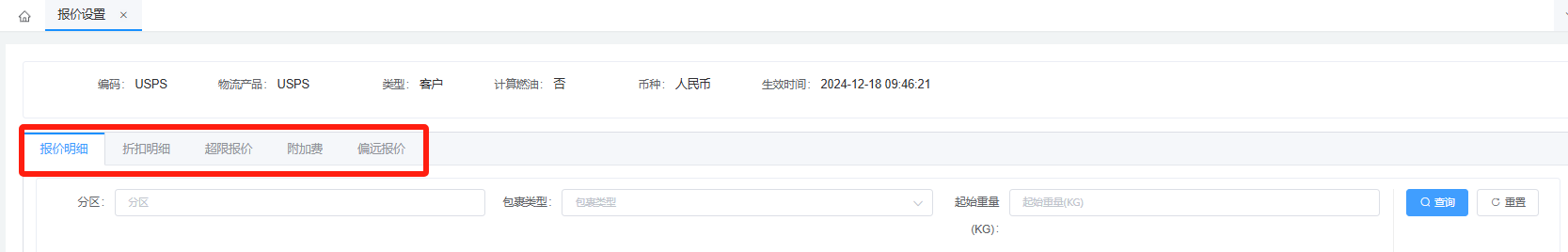 简介:即单独为目标客户做报价的模式,指定客户的专属报价。 【报价管理-客户专属报价】,点击【新增】按钮,红色*必填,点击【确定】后保存该信息,启用并进行下一步【报价明细】维护 - 客户:输入模板客户名称 - 物流产品:下拉选择对应的产品 - 计算燃油:不含燃油,需另外计算燃油,勾选是;含燃油,不需另外计费燃油,勾选否 - 报价标准单位:公制、英制 > 选择公制,以KG单位导入,选择英制,以LBS单位导入 - 运费计费物流类型:按票计费、按件计费,默认按票 - 低消类型:无、金额、实物,默认选无 - 生效时间:报价生效开始时间 填写参考信息如下图:   ## 报价明细 客户专属报价查询界面,【操作-报价明细】,点击进入明细维护界面  #### 报价设置分为5个部分:报价明细、折扣明细、超限报价、附加费、偏远报价  ## 1.报价明细 报价明细是物流产品的主运费报价区域,分手工创建报价和导入报价 ### 1.手工创建报价 报价明细查询界面右边,点击【新增】按钮,填入分区号、开始重量、结束重量,选择计算方式,填写金额后点击【确定】后保存该信息   #### 1.1 快录 > 快录分为两种方式:专线小包格式、快递报价  1.11.专线小包格式 针对每公斤运费+整票加收固定金额的报价方式: 表格中按一列重量、一列公斤单价、一列整票加收固定金额编辑好,从第1段重量开始复制到最后一个金额,粘贴到空白处,最后点击【智能转换】后,点击【确定】后保存该信息   1.12.快递报价 针对不同邮编分区,不同重量段,不同的固定金额的报价方式: 表格中一列重量、一列金额编辑好 表格中,首行首列第一个单元格重量改成0,重量从0开始复制到最后一个金额,然后粘贴到系统表格空白处,最后点击【提交】   #### 1.2.导入报价 一维导入,下载模板,按模板内容填写 包裹类型:默认填包裹 起始、结算重量:根据报价重量段范围填写 计算方式:默认填速查 单位重量:默认填0 单价:复制每一个分区每一个重量段对应的金额    - 删除功能:清空整个报价明细记录 - 导出:导出整个报价明细记录 - 预览:预览查看报价明细中维护的报价 - 批量编辑:仅可修改金额/单价 ### 2.折扣明细 折扣明细,设置折扣,关联报价明细的主运费; 主要针对公布报价,做个折扣来做客户报价时,可使用该功能; 报价明细按照公布价来做,然后这里再维护一下折扣,计费就按照折扣后的费用计费; 报价明细查询界面左边,点击【导入】,进行折扣维护界面   点击【下载模板】到本地,折扣明细模板,样式如下图,按表头信息填好后在此处上传文件   > 折扣明细模板填写说明: ①.折扣数按整数或者小数点填写,如:不打折,填1代表全折,打9折填0.9,打8折填0.8… ②.可按重量分段做不同折扣,重量分段表头需按照系统设置规格:包裹类型/开始重量-结束重量,包裹类型有:包裹、PAK袋、文件,默认填包裹 如:10KG以内不打折,表头为【包裹/0-10】,折扣填1 超10KG以上打9折,表头为【包裹/10-?】,折扣填1,问号代表无限大   - 删除功能:清空整个折扣明细记录 - 导出:导出整个折扣明细记录 - 预览:预览查看报价折扣中维护的折扣 - 批量编辑:仅可修改折扣 ### 3.超限报价 #### 超限报价是报价方式的一个补充,满意某个条件时,需要超限计费的方式,比如超尺寸、重量等其他条件时,另外加收费用 超限查询界面,点击【新增】按钮,选择包裹类型,选择计费方式,填写超限条件公式,填入金额后保存 - 包裹类型:包裹、PAK袋、文件 - 计算方式:运费附加,除运费外另外加收;一口价,包含运费,总费用 - 超限条件:查看变量和公式说明,填写条件和金额,通过填写的超限公式,满足条件后按设置的计算方式收取金额 - 校验公式:校验填写的超限条件公式是否正确     如:任意一边边长超120CM除运费外另外加收20元;任意一边边长超270CM按一口价500元收取,含所有费用  > 按分区报价:选否,则按整个产品收取固定金额,选是,则按不同的邮编分区,收取不同金额,点击【分区报价】导入不同分区超限金额   ### 4.附加费 附加费是报价方式的一个补充,满意某个条件时,需要额外计费的方式,比如C操作费、处理费、平邮费、挂号费、旺季附加费等整票加收费用 - 费用项:可自定义,下拉选择对应费用项名称 费用项查看助手:http://doc.goto56.com/project-9/doc-108/ - 附加费查询界面,点击【新增】按钮,选择费用项,选择是否按分区重量分段,根据实际需要填入计算公式,填入最低费用,选择是否计算燃油后保存     1. 选择否,则按物流产品加收固定费用,不分重量段  - 计算公式:查看公式说明,可设置附加费按每公斤收费  按分区重量段: 选择是,则要维护【分区重量段】明细,如按不同分区不同重量段收费不同; 操作-分区重量段-导入-下载模板-填写后上传 ### 5.偏远报价 偏远报价是偏远邮编报价,按照维护的偏远分区模板设置收费标准 偏远分区模板查看助手:http://doc.goto56.com/project-9/doc-46/ 偏远报价查询界面,点击【导入】进入导入界面,下载模板到本地,按表头内容填写后在此处上传文件    - 删除功能:清空整个偏远报价记录