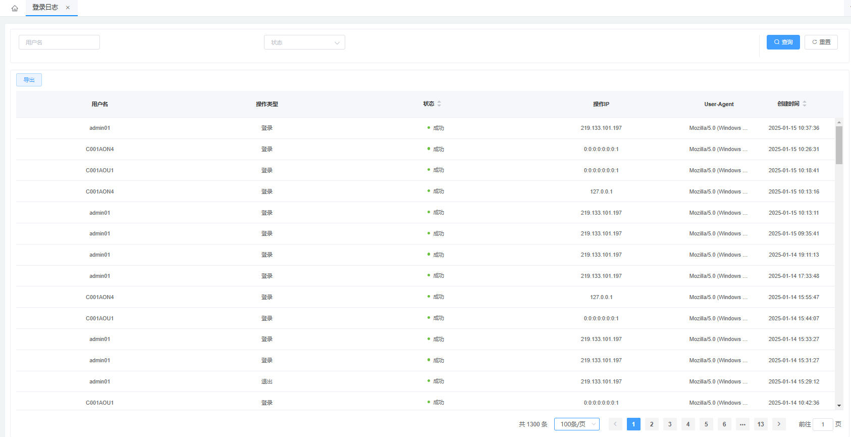 ## 简介:管理端用户账号登录记录查询列表 【日志管理-登录日志】